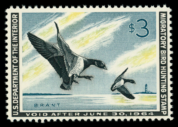 9295 nh RW30 imageFederal Duck Stamp, 1963, $3 Brants (Scott RW30), o.g., never hinged, Very Fine.