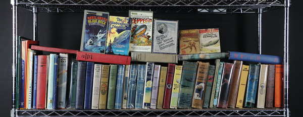 9346 literature imageZeppelins and Airships for Youth, 50 books for the school aged reader; When Monsters Roamed the Sky, Tom Swift and His Aerial Warship, Through the Air to the North Pole, and Tailspin Tommy are typical titles; some are from collections including the Every Boy Mystery Series, and the Airship Boys (Due North, Adrift, and Ocean Flyer); majority are hardcover chapter books; includes the card game Around the World with the Graf Zeppelin. Shipping charges apply - weight 55 lbs. (Image) Suggested Bid $17
