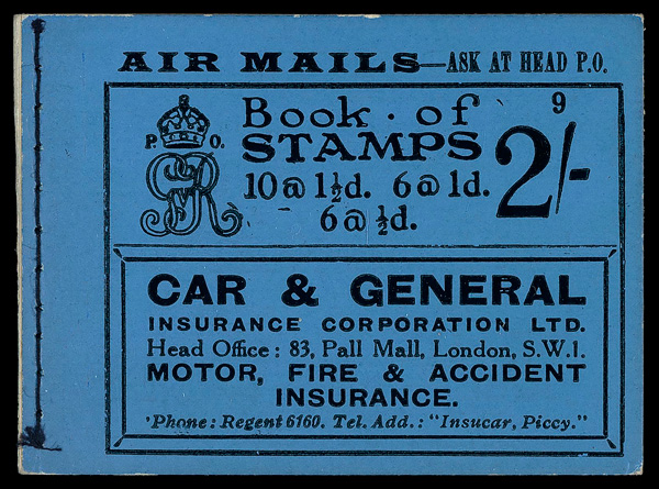 9355 BKnh BK11 image1924, 2sh black on blue booklet (Scott BK11), wmk 35 Crown & Block GvR multiple, complete and unexploded, o.g., never hinged, Fine to Very Fine.