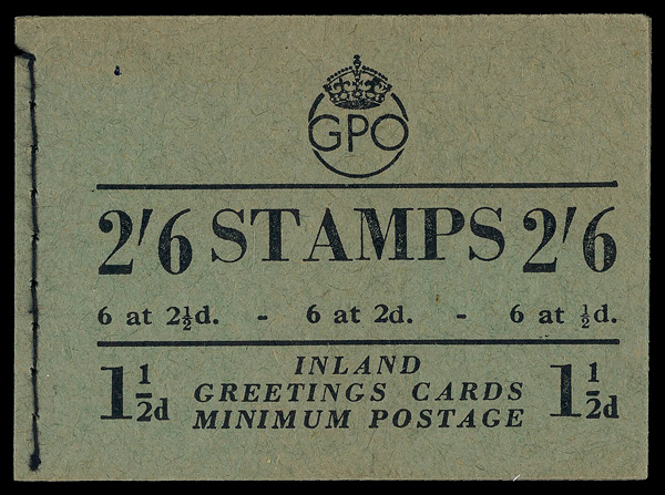 9357 BKnh BK51 image1951, 2sh6d black on green booklet (Scott BK51), complete and unexploded, o.g., never hinged, Fine to Very Fine.