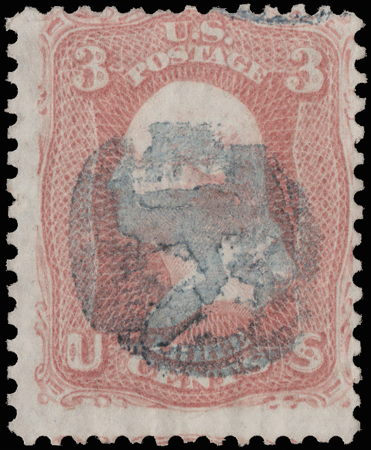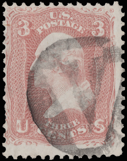 9337 O Unlisted image18-Bar Open Circle Grid (Skinner-Eno Unlisted), nice strike on a 3¢ rose (65); an unusually fine-lined grid. (Image) Suggested Bid $26