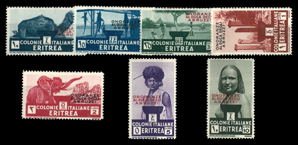 9326 og 168-174 image1934, Pictorials overprinted complete (Scott 168-174), complete set of singles, o.g., hinged, Fine to Very Fine.