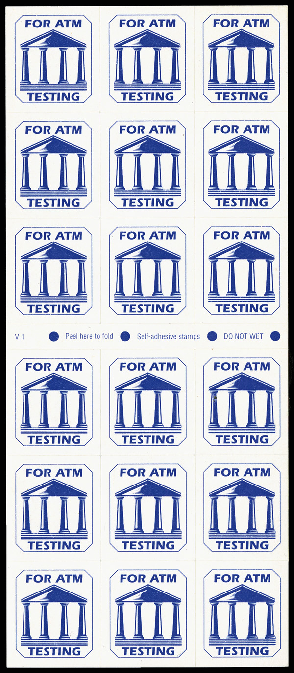 9322 nhbl TDB89a image1997, dark blue Temple "For ATM Testing" (Scott TDB89a), self adhesive booklet of 18, o.g., never hinged, Extremely Fine.