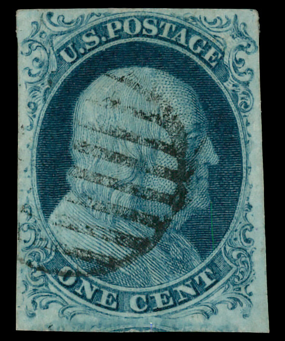 7006 O 7 image1851, 1¢ blue, type II (Scott 7), Extremely Fine.