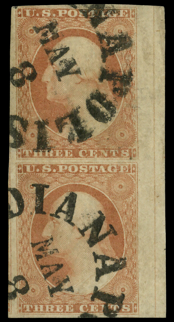 7008 O 11 image1852, 3¢ dull red, type I (Scott 11), vertical pair, Very Fine.