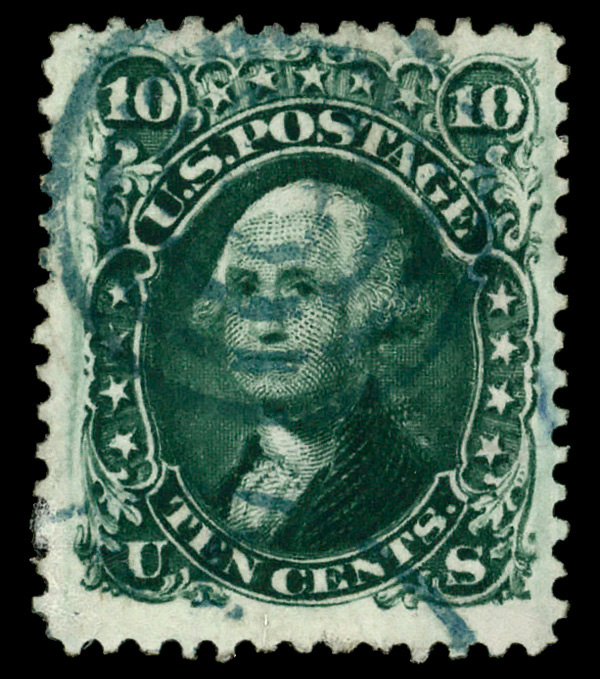 7029 O 68 image1861, 10¢ green (Scott 68), blue cancel, Fine to Very Fine.