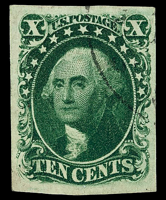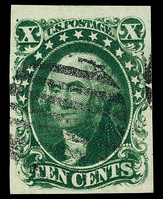 7022 O 35 image1859, 10¢ green, type V (Scott 35), light cancel, Very Fine to Extremely Fine.