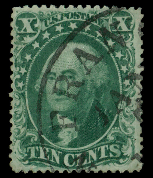 7027 ng 68 image1861, 10¢ green (Scott 68), regummed; small thin and reperfed at bottom, Fine to Very Fine.