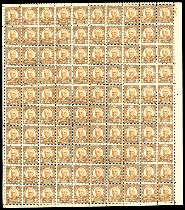 7361 nhbl 654 image1929, 2¢ Edison, flat plate printing (Scott 654), pane of 100, o.g., never hinged (minor gum skips), Very Fine.