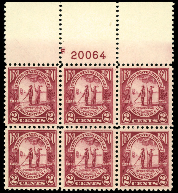 7371 nhbl 683 image1930, 2¢ Charleston (Scott 683), plate block of 6, o.g., never hinged (minor gum skips), Extremely Fine.