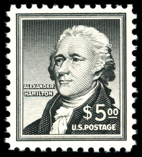 7406 nh 1052-1053 image1955-56, $1 purple Henry & $5 black Hamilton (Scott 1052-1053), o.g., never hinged, Very Fine.