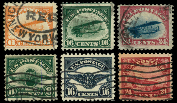 7429 O C1-C6 imageAirmail, 1918-23, First and Second Issues complete (Scott C1-C6), set of 6, Fine.