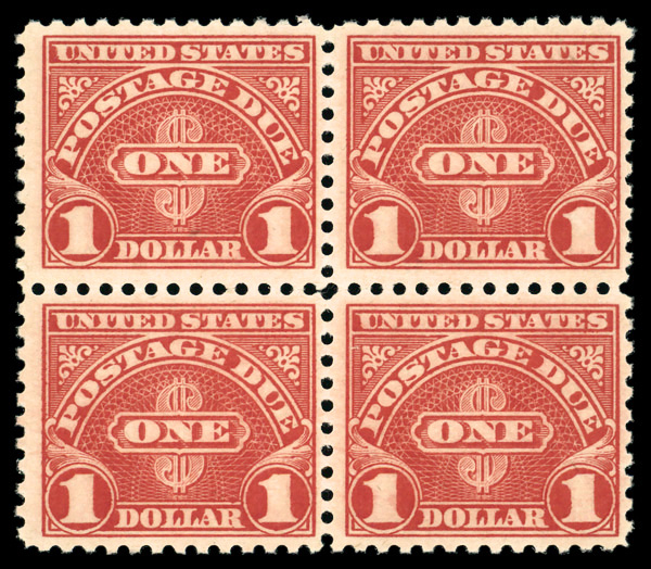 7480 nhbl J77a imagePostage Due, 1930, $1 scarlet (Scott J77a), block of 4, o.g., never hinged, Fine to Very Fine.
