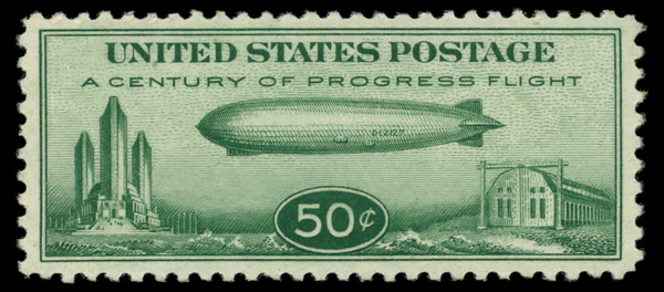 7459 nh C18 imageAirmail, 1933, 50¢ "Chicago" Zeppelin (Scott C18), o.g., never hinged, Very Fine to Extremely Fine.