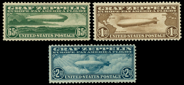 7450 og C13-C15 imageAirmail, 1930, Graf Zeppelin complete (Scott C13-C15), set of 3, o.g., hinged, Fine to Very Fine.