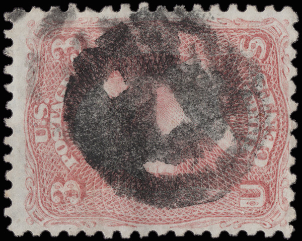7601 O Unlisted imagePumpkin Face (Skinner-Eno Unlisted), Very Fine strike on a F-VF 3¢ rose (65). (Image) Suggested Bid $40