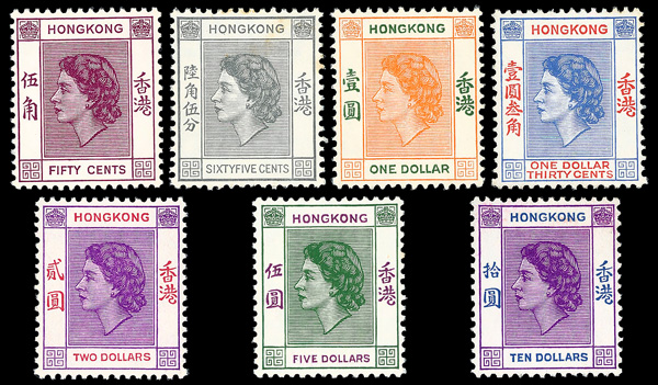 7626 nh 28-42 image1955, Queen Elizabeth II Pictorials, 1¢-$5 complete (Scott 28-42), set of 17 including finer screen 10c & 50c, o.g., never hinged, Very Fine to Extremely Fine.