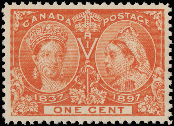7641 nh 51 image1897, Queen Victoria Jubilee, 1¢ orange (Scott 51), a phenomenal mint example, o.g., never hinged, incy fresh with ccen and blazing color, Extremely Fine to Superb.