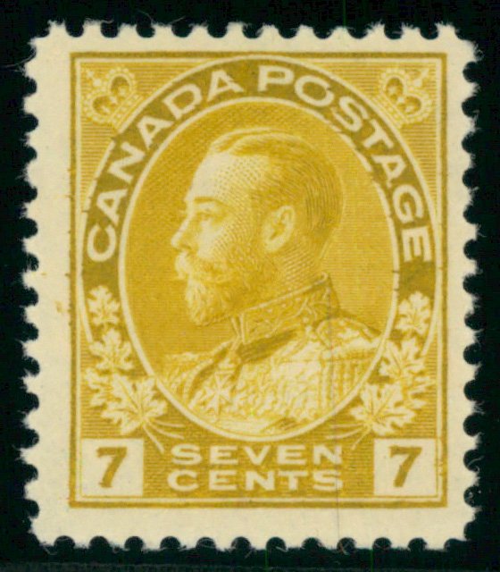 7672 og 113 image1912, King George V "Admiral", 7¢ yellow ocher (Scott 113), o.g., lightly hinged, Fine to Very Fine.