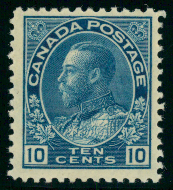 7676 nh 117a image1922, King George V "Admiral", 10¢ blue, dry printing (Scott 117a), o.g., never hinged, Fine to Very Fine.