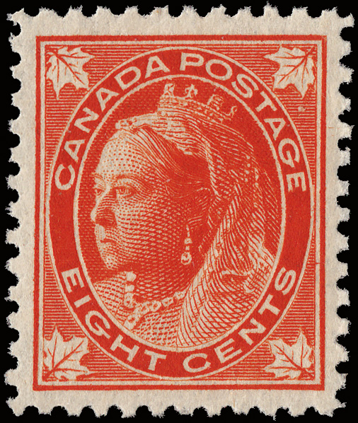 7656 nh 72 image1897, Queen Victoria "Maple Leaf", 8¢ orange (Scott 72), a choice mint example, o.g., never hinged, beautifully centered with extraordinary color, Extremely Fine.