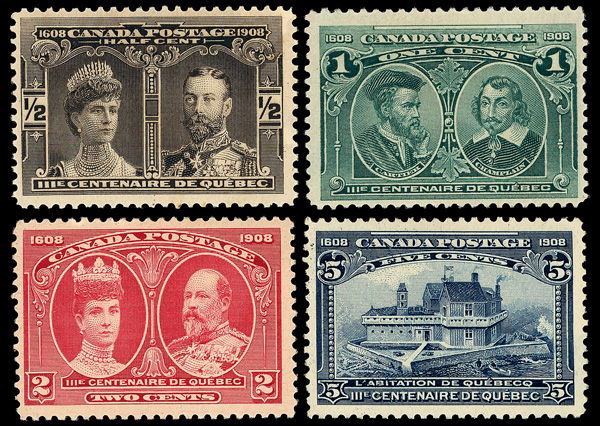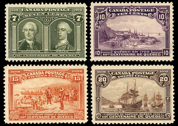 7661 nh/og 96-103 image1908, Quebec Tercentenary complete (Scott 96-103), set of 8, o.g., hinged (7¢ & 15¢ never hinged), Fine to Very Fine.