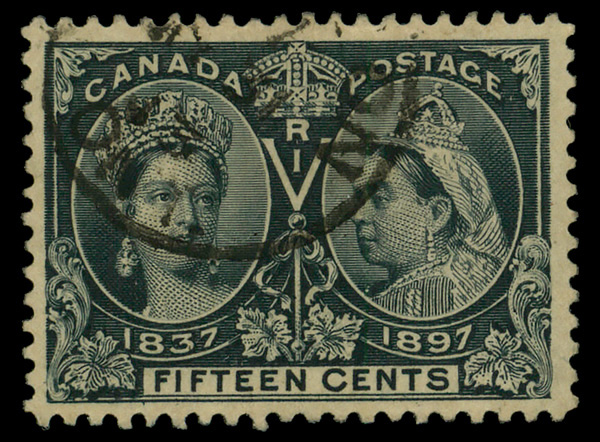 7648 O 58 image1897, Queen Victoria Jubilee, 15¢ steel blue (Scott 58); tiny hinge thins, Very Fine to Extremely Fine.
