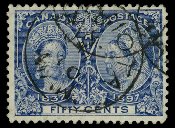 7650 O 60 image1897, Queen Victoria Jubilee, 50¢ ultramarine (Scott 60), Fine to Very Fine.
