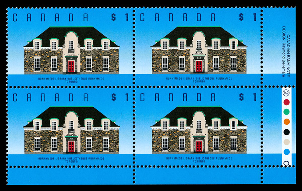 7741 nhbl 1181iv image1992, $1 Runnymede Library, CBN reprint (Unitrade 1181iv), inscription block of 4, o.g., never hinged, Extremely Fine to Superb.