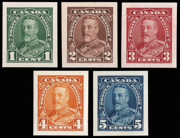 7724 nh 241-245 image1938, King George VI definitives, 10¢ to $1 complete (Scott 241-245), set of 5, o.g., never hinged (13¢ disturbed gum), Very Fine to Extremely Fine.
