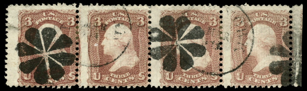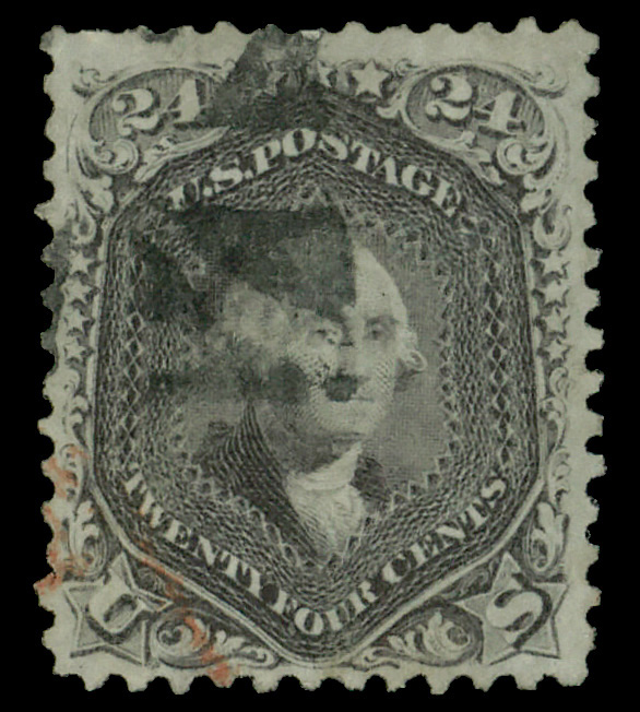 7041 O 78a image1863, 24¢ grayish lilac (Scott 78a), black & red cancels; short perfs top left, Fine to Very Fine.
