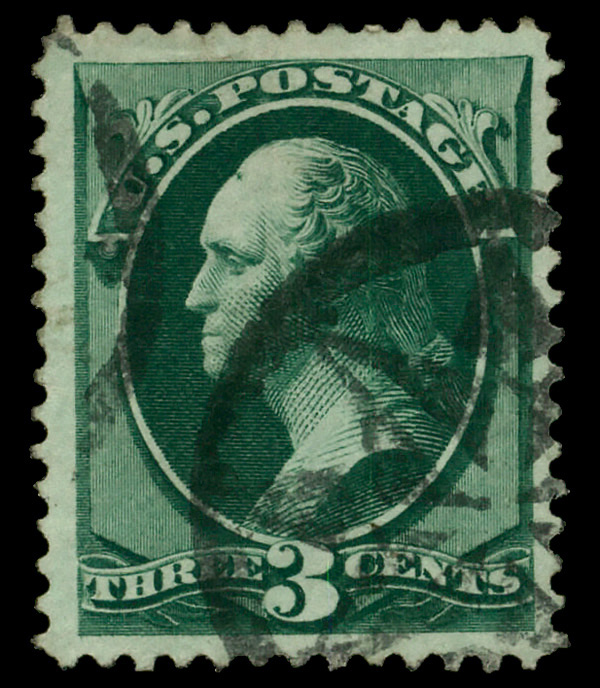 7077 O 184 image1879, 3¢ green, A.B.N.C. printing (Scott 184), lot of 5 fancy cancels. (Image) Suggested Bid $40