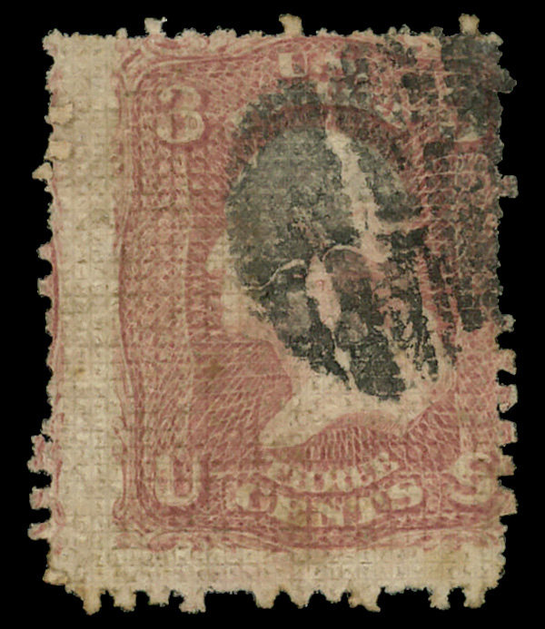 7043 O 79 image1867, 3¢ rose, A. grill (Scott 79); usual rough perfs, Very Good.