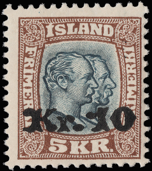 7822 nh 143 image1930, Two Kings, Kr. 10 on 5kr brown & slate (Scott 143), o.g., never hinged!, unusually fresh, Fine.
