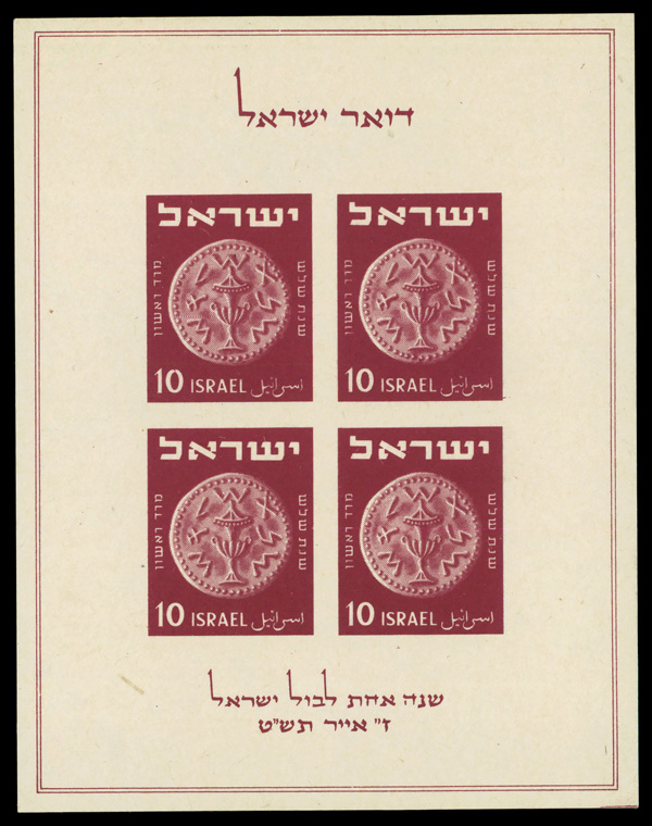 7824 nhbl 55 image1952, 1000p Menorah (Scott 55), plate block of 4, o.g., never hinged, Very Fine.