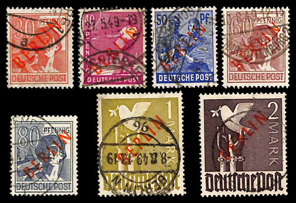 7818 cover 9N1-9N20 image1948 Black Overprints complete (Scott 9N1-9N20), on two Registered covers to Wadern, Saar, the pfennig values on one, the Mark values on the other, all tied by Berlin bridge cancels; 1M stained at lower right, others fresh and clean, Fine to Very Fine, with partial photocopy of 1978 Schlegel certificate.