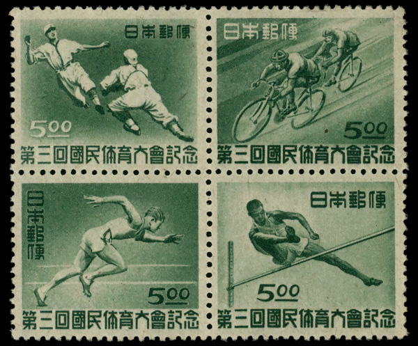 7838 ogbl 421a image1948, 3rd National Athletic Meet, se-tenant block of 4 (Scott 421a), o.g., lightly hinged, Very Fine to Extremely Fine.