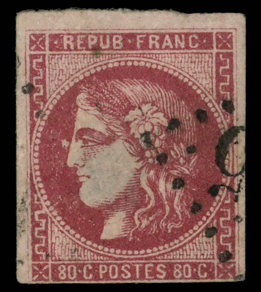 7805 O 48 image1870, Bordeaux, 80c rose on pinkish (Scott 48); thin, Fine.
