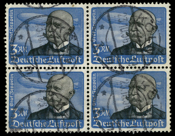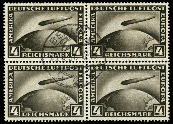 7810 Obl C56 imageAirmail, 1934, 3m Zeppelin (Scott C56), block of 4, Extremely Fine.