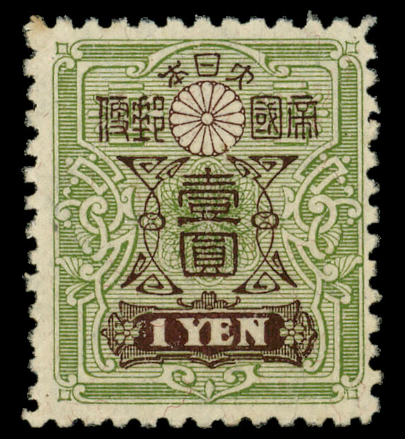 7836 nh 145 image1914, Tazawa, 1y yellow green & maroon (Scott 145), large ("old") die, o.g., never hinged, Fine.