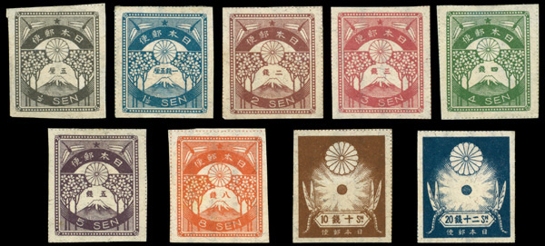 7837 ng 179-187 image1923, Earthquake Emergency Series, ½s to 20s complete (Scott 179-187), without gum as issued, Very Fine to Extremely Fine.