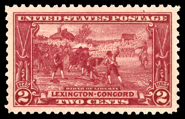 7340 O 619 image1925, 5¢ Lexington-Concord (Scott 619), large margins, Extremely Fine.