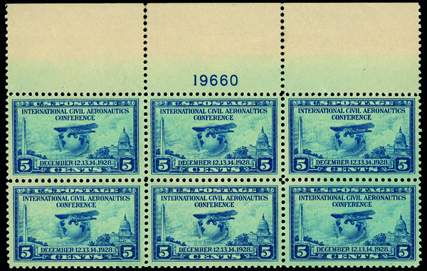 7360 nhbl 649-650 image1928, Civil Aeronautics complete (Scott 649-650), plate blocks of 6, o.g., never hinged, Very Fine to Extremely Fine.
