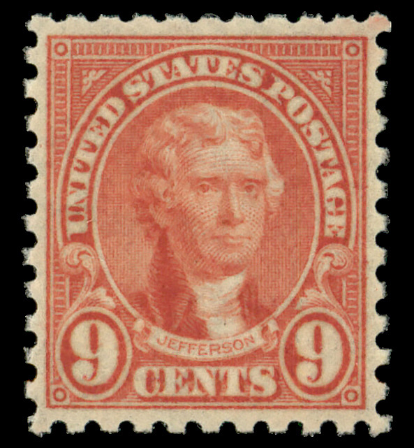 7329 nh 590 image1926, 9¢ Jefferson, rotary press printing, perf. 10 (Scott 590), o.g., never hinged, Very Fine to Extremely Fine.