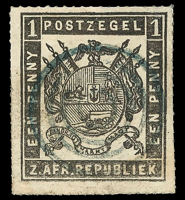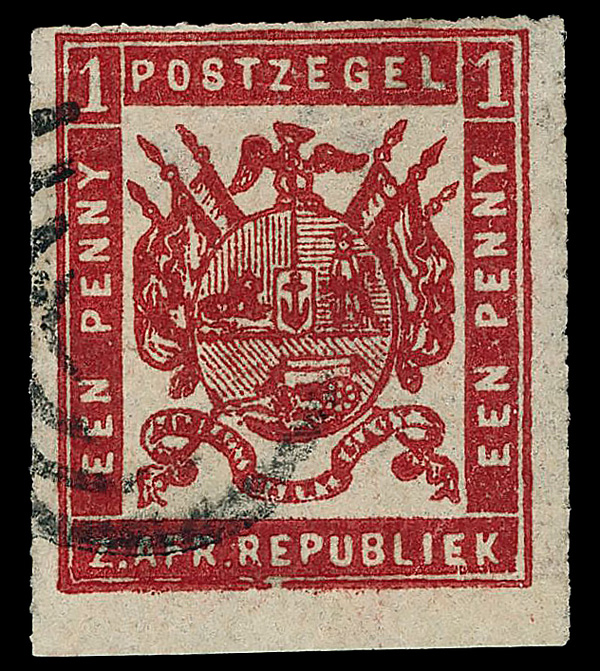 8373 og 16a image1870, 1d carmine Coat of Arms, roulette, hard paper, Viljoen Local Printing (Scott 16a), o.g., lightly hinged, Very Fine.