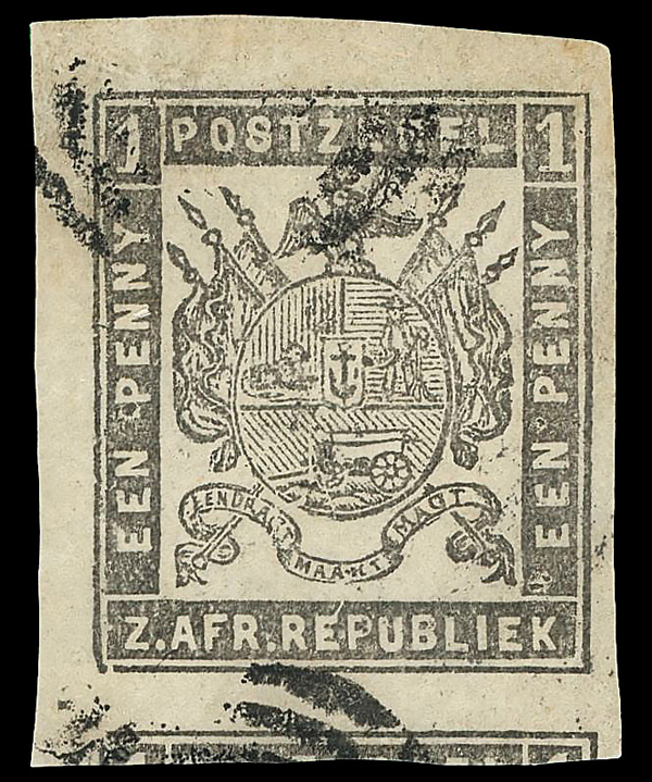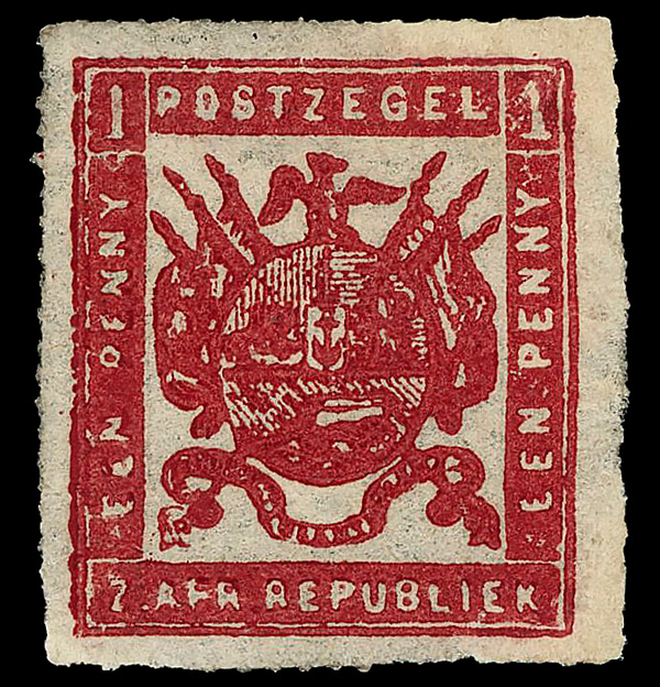 8372 O 9b image1870, 1d carmine Coat of Arms, imperf, thin soft paper, Viljoen Local Printing (Scott 9b), Fine.