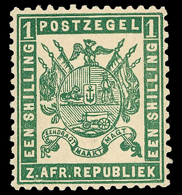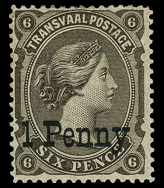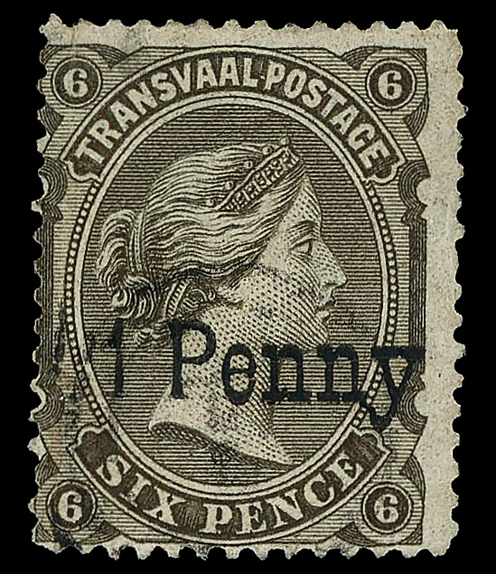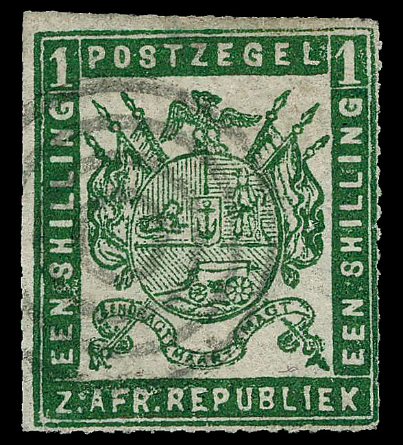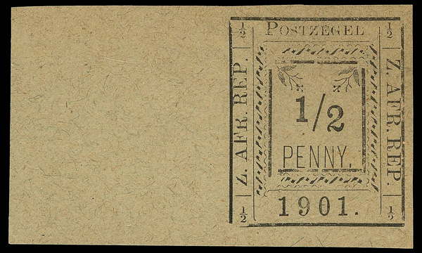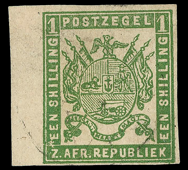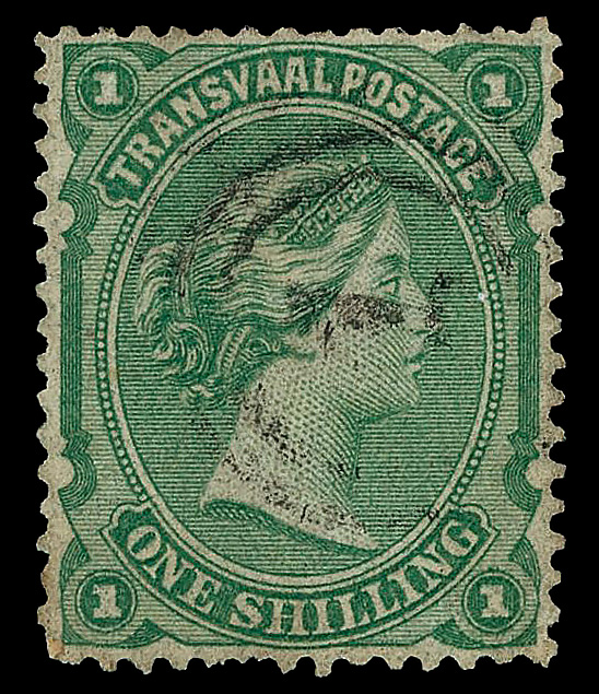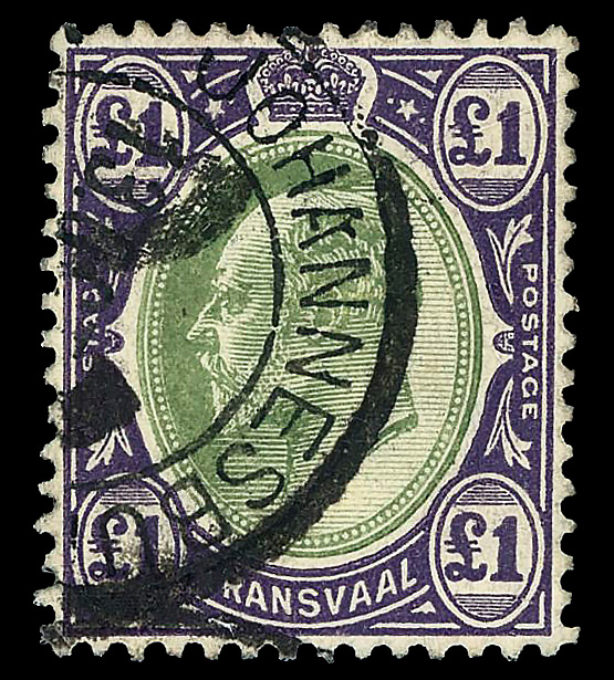 8385 og 175a image1901, ½d black on green Pietersburg Issue, initials omitted (Scott 175a), left margin single, o.g., hinged, Very Fine to Extremely Fine.