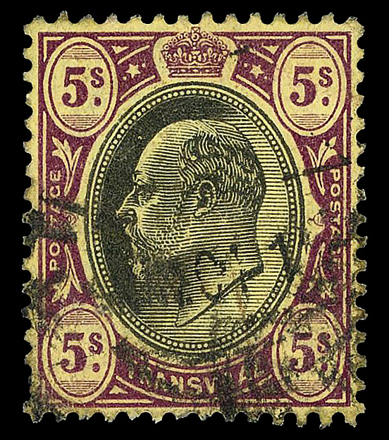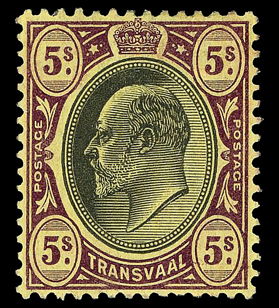 8391 og 264 image1902-03, 5sh violet & black on yellow, King Edward VII (Scott 264), o.g., lightly hinged, Very Fine to Extremely Fine.