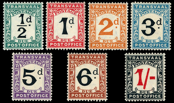 8398 og J1-J7 image1907, ½d-1sh Numerals, complete (Scott J1-J7), set of 7, o.g., hinge remnants, Fine to Very Fine.