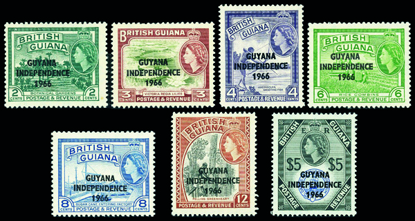 8367 nh 1-6 image1966, 2c-$5 Independence overprint, complete (Scott 1-6), o.g., never hinged, Very Fine.